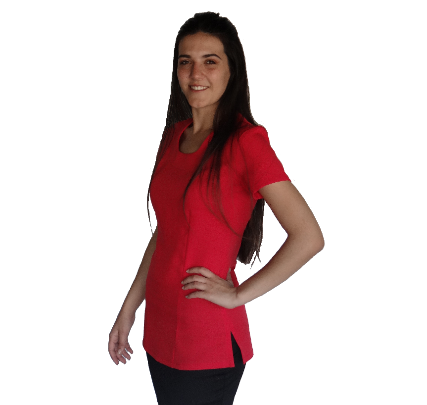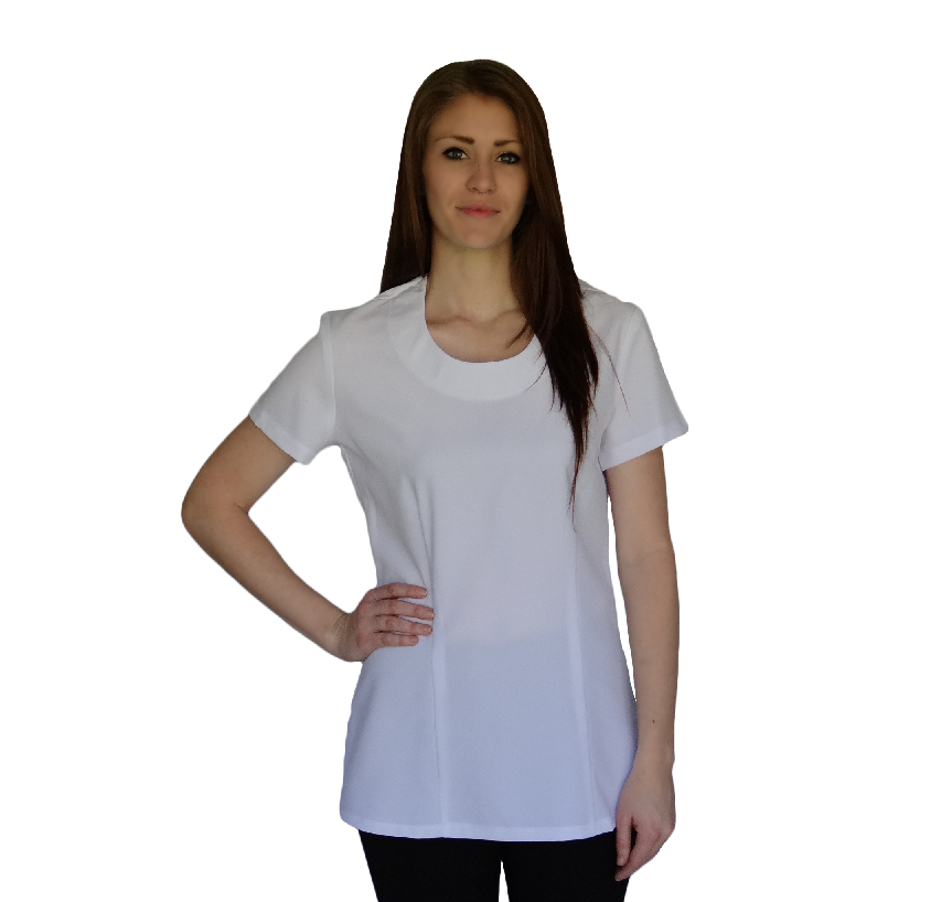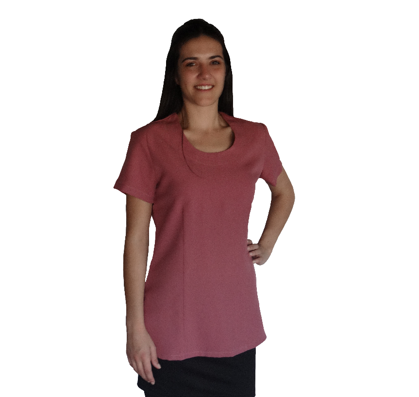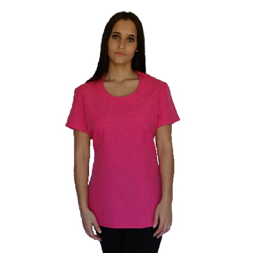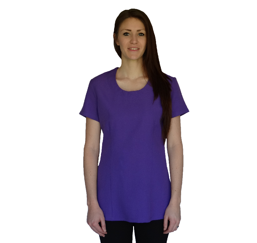 A entry level basic slim cut top made from mini matt 100% polyester.