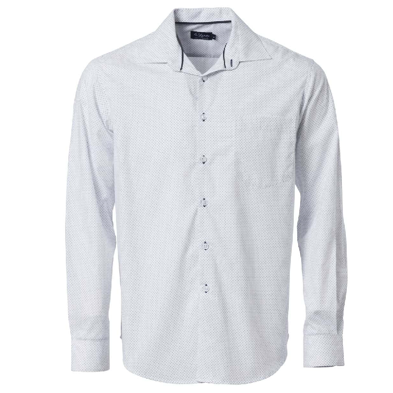 New fashion fit, with cut-away collar and knife pleat. Posted seams. Contrast piping in collar. Available in long sleeves only