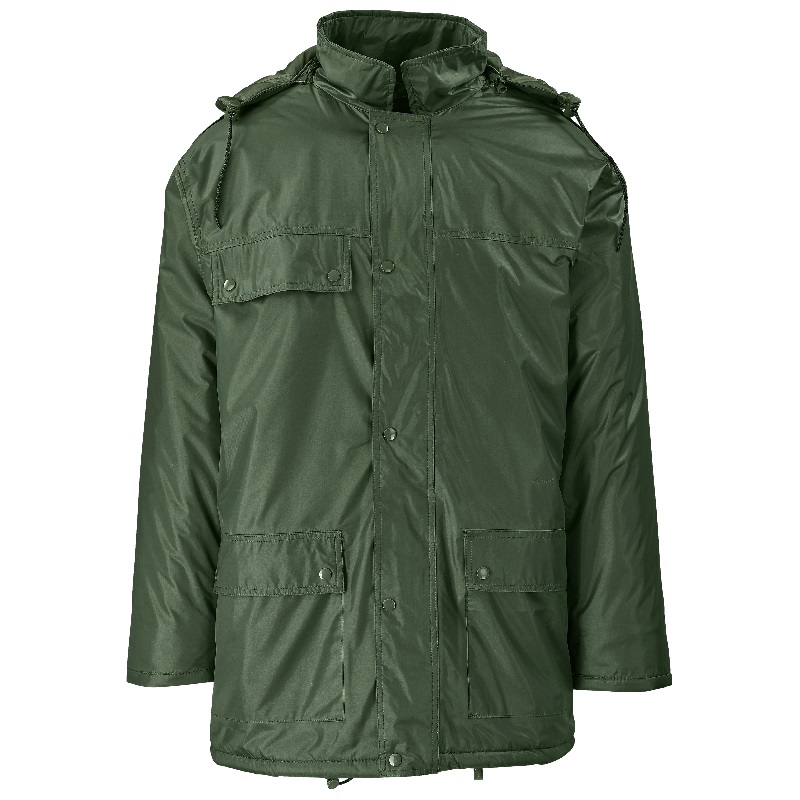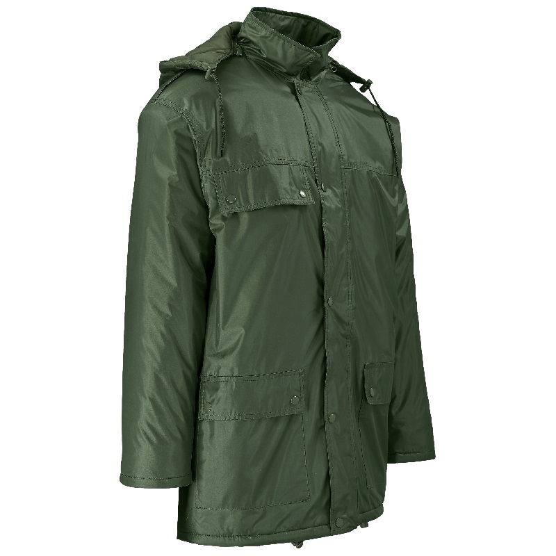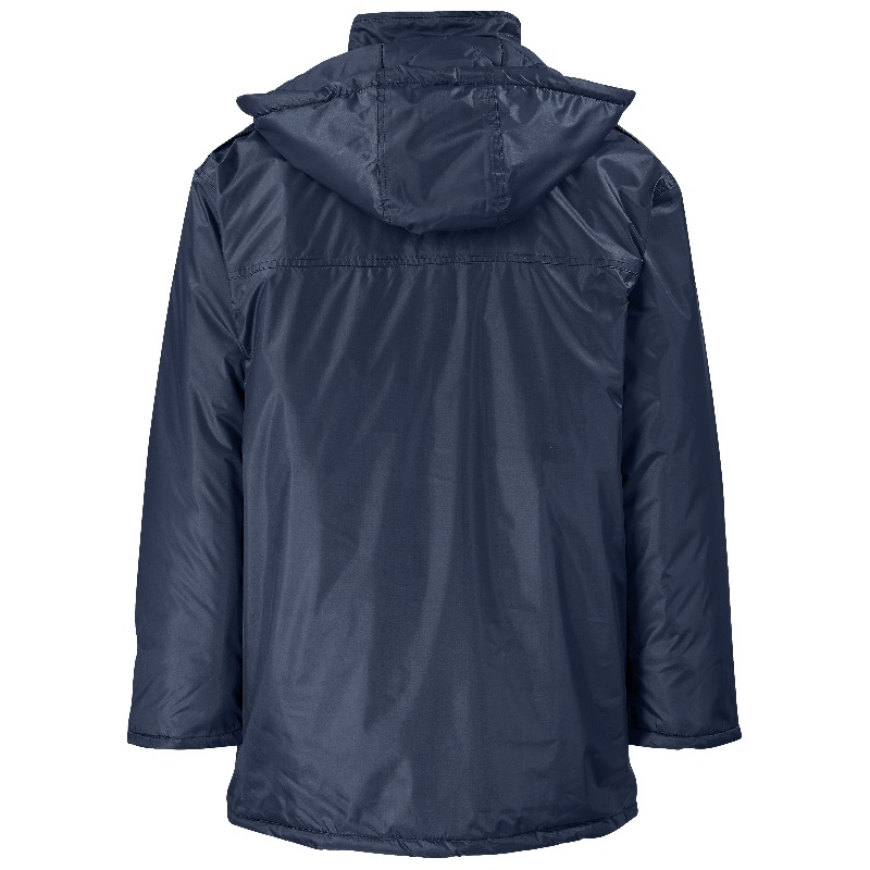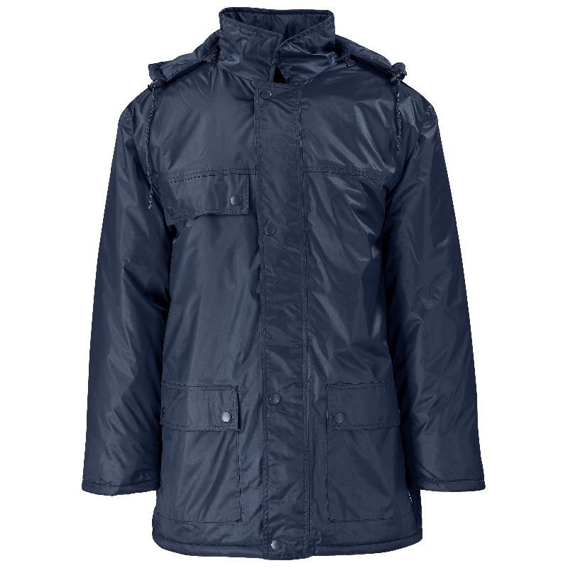 detachable hood with drawcord and toggles • concealed zip features storm flap withpress stud closure