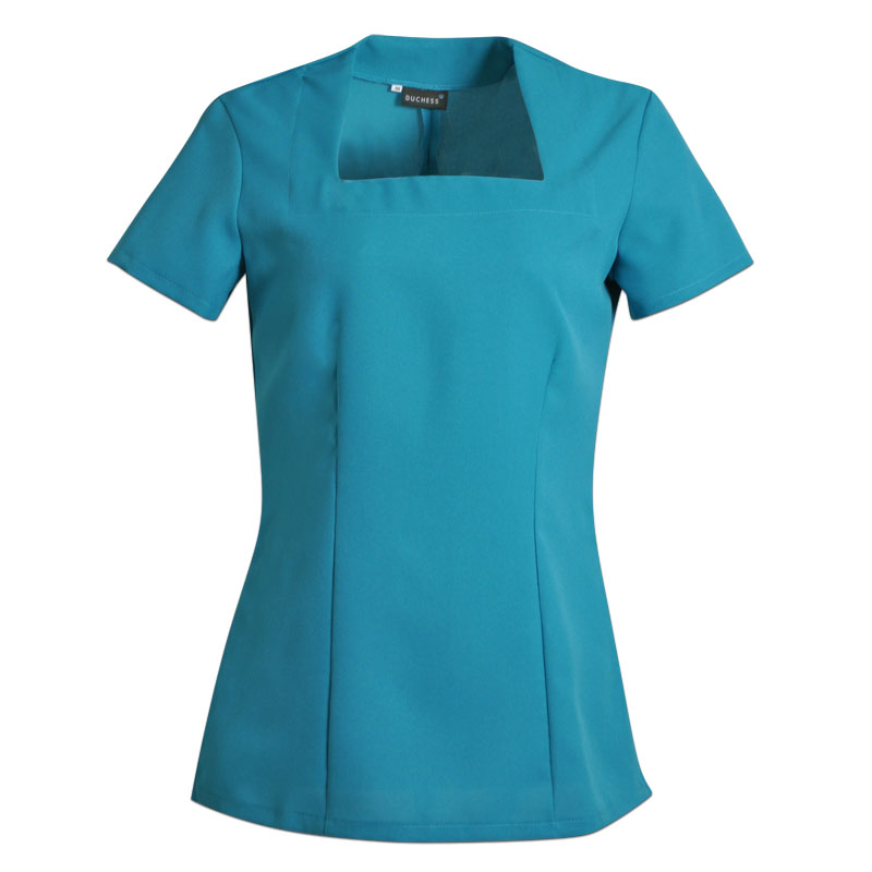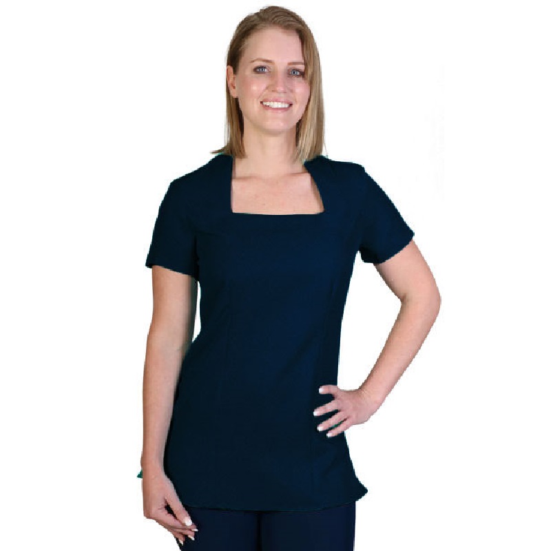 The Lily Beauty top is constructed from mini matt fabric and has an elegant square neck, is free from zips or buttons, has side slits for comfort and ease of movement and has wash & wear properties.