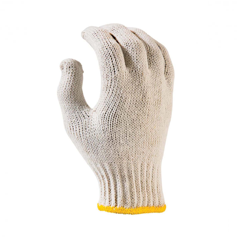 Machine knitted 7 guage (String Knit or Crochet) Natural white cotton (reversible) seamless glove. Elasticised composite knitted wrist, Colour coded and overlocked cuff. This glove is designed for extra comfort with superior durability. Being seamless knit with elastic cuff and reversible (wear on either hand) these gloves are more comfortable to the wearer. Knit construction stretches for excellent fit while allowing air to circulate to keep hands dry and comfortable. These gloves are ideal as medium duty industrial, general work and liner gloves.