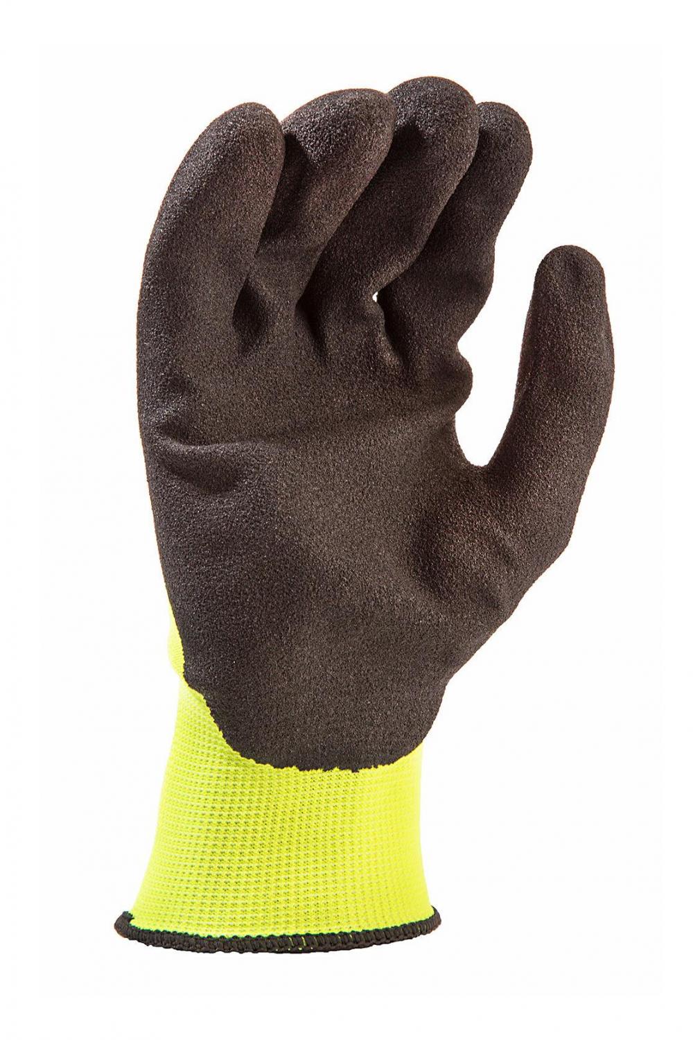 ArrayMOZZI 300HI 13gg polyester/spendex thread coated on the palm with a waterbased PU Micro foam Finish. MOZZI combine a high-visibility lime liner with water-based polyurethane coating. Thanks to the water-based polyurethane, users benefit from enhanced comfort with the renowned dexterity and fit of the MOZZI range. Palm dipping reinforces the protection without compromising flexibility and dexterity. Using water instead of dimethylformamide solvent enhances the comfort of the glove, as the polyurethane doesn’t penetrate inside it.
