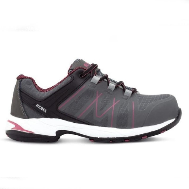 The REBEL RE941 Ladies light Industrial safety shoe features a modern, sleek and sporty designed upper which includes a combination of grey oxford mesh and a Nubuck back guard with TPU Trim resulting in excellent fit and comfort. It is a lightweight, stylish safety shoe with a 200J steel toe cap and electrostatic discharge properties (ESD). The Ladies Light Industrial safety shoe is available in a men’s colour option (RE942) and is ISO 20345 and SABS approved.